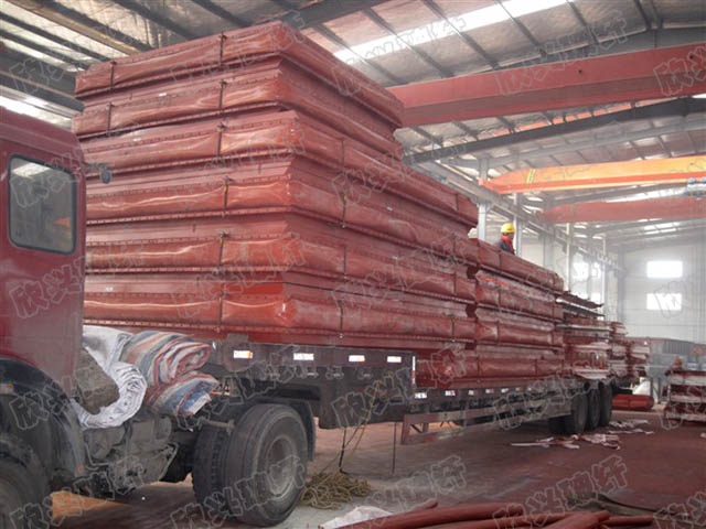 6、安裝非金屬膨脹節(jié)(纖維織物補(bǔ)償器)完畢后,應(yīng)拆除運(yùn)輸拉桿和帶有黃色標(biāo)記的限位拉桿。